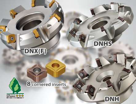 為鑄鐵部件的高效率粗、精加工用而開發(fā)的刀盤。刀片采用